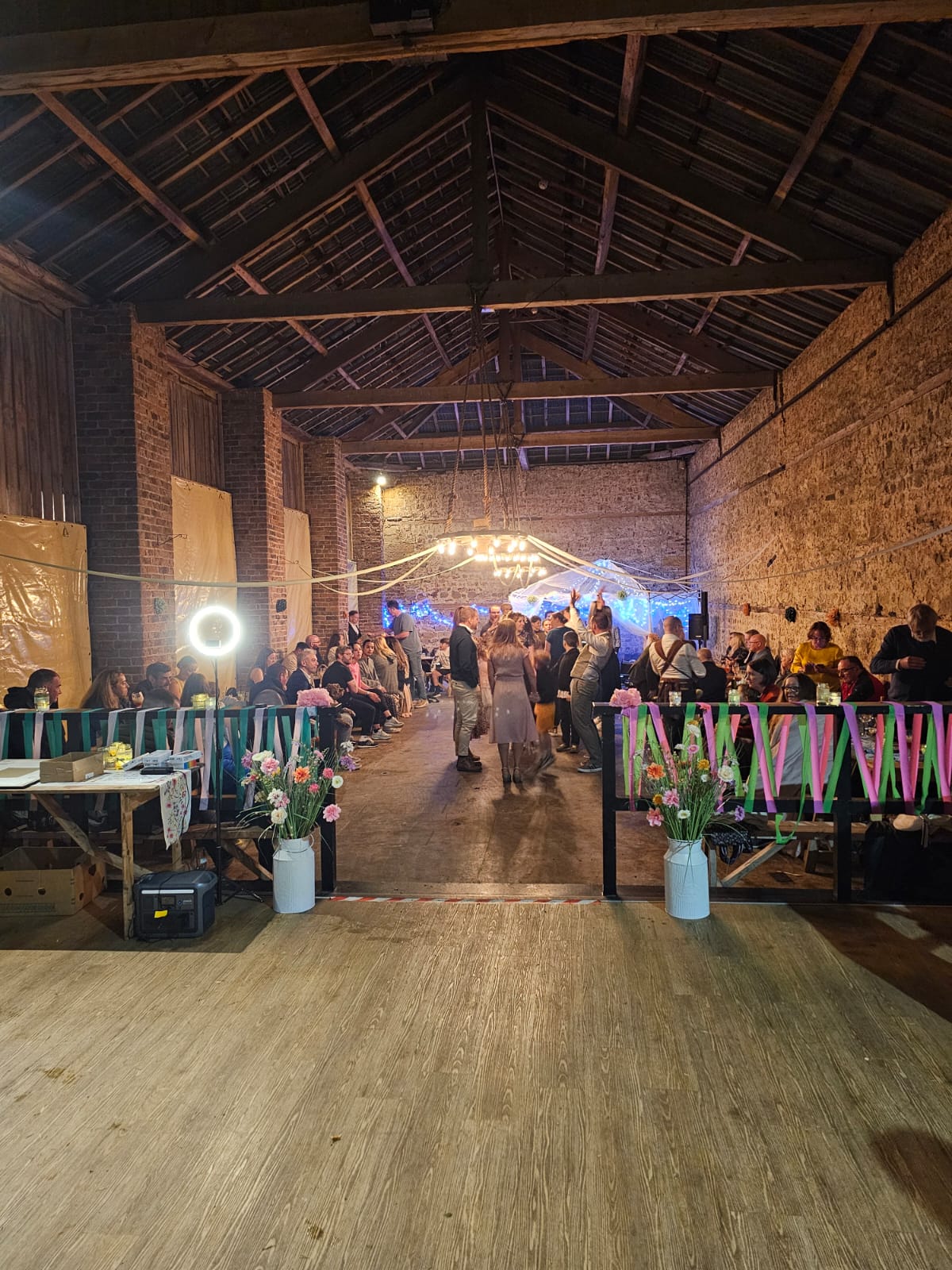 The happy couple and their 100 guests were kept cosy and dry inside the barn as the weather waged war outside. With exposed brickwork and high ceilings, this airy space was the perfect setting for the day’s activities. Guests mingled, stuffing their faces with Hog Roast Bedale’s delicious selection of food before hitting the dance floor for some lively ceilidh dancing that carried into late hours